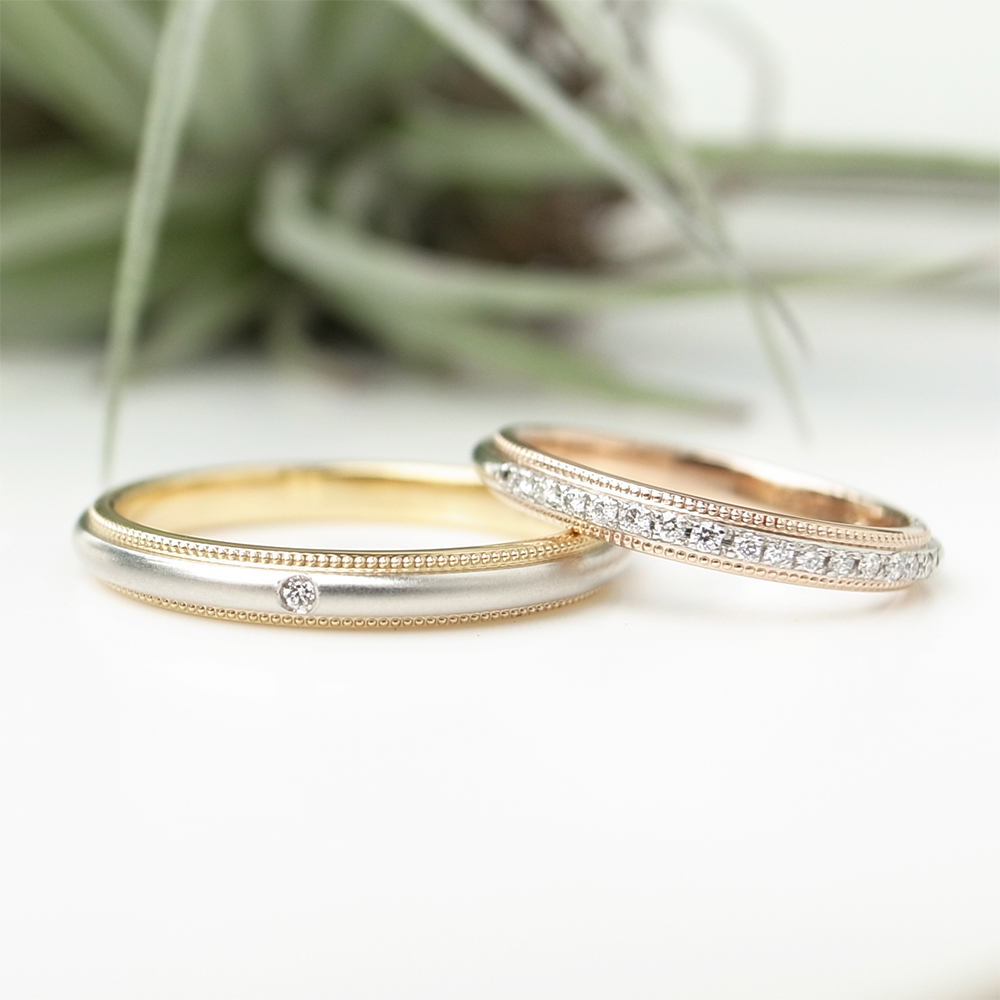 旦那様のリングは、K18とプラチナにワンポイントダイヤモンドを。