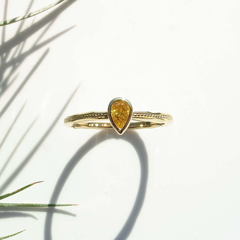 The RING Fancy Vivid Yellow 0.149ct VS2 AGTソーティング付