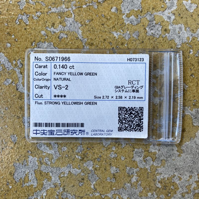 裸石 0.140ct Fancy Yellow Green VS2中央宝石研究所ソーティング付